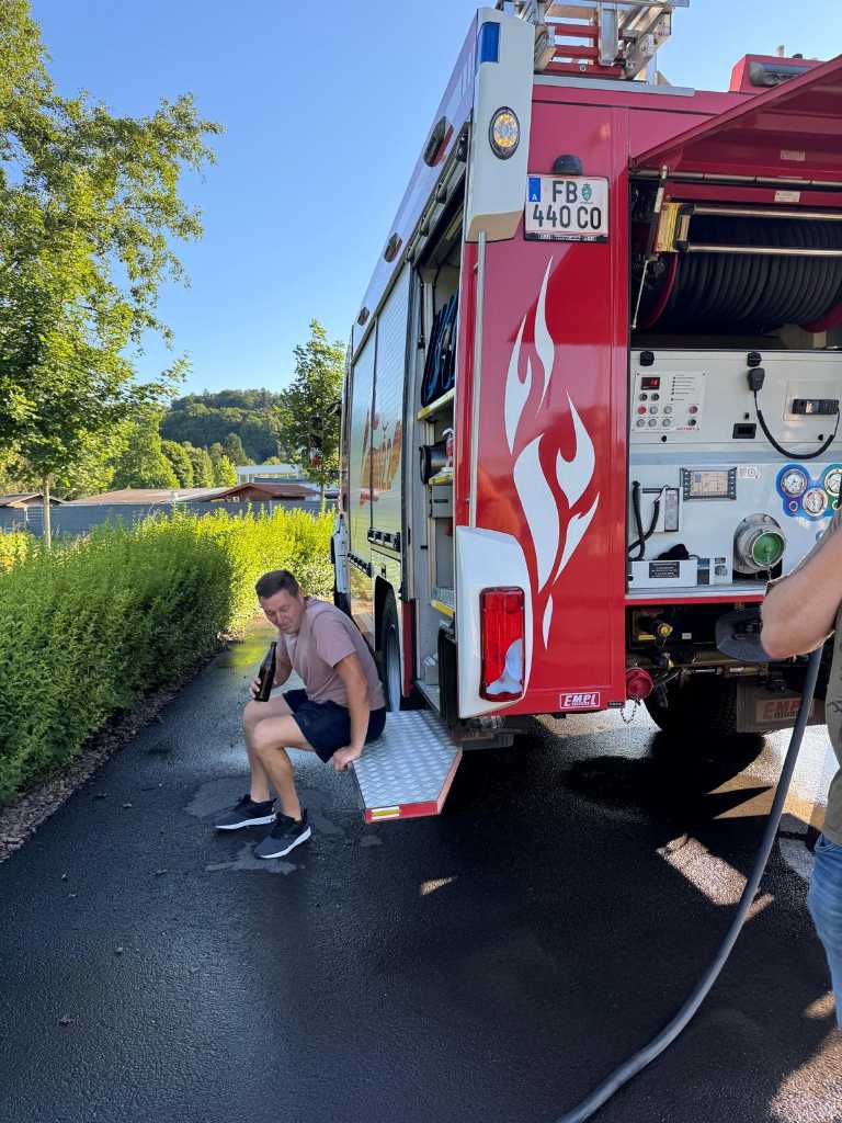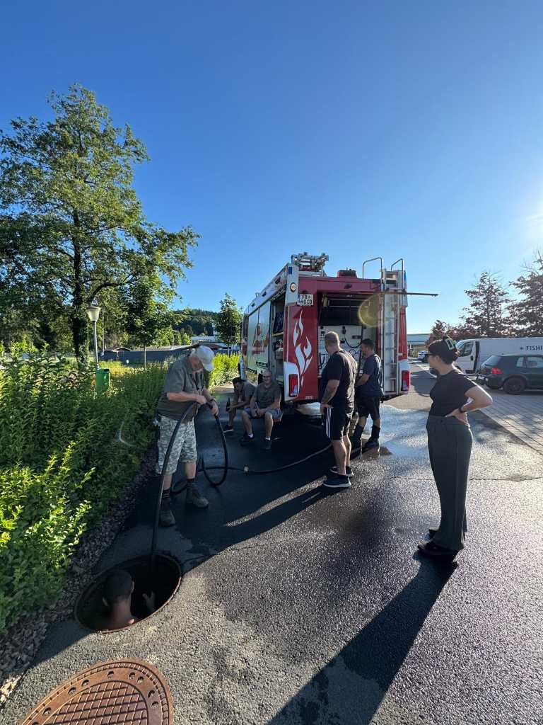 Da der Abfluss beim großen Vereinsteich nicht mehr einwandfrei funktionierte, haben wir die Freiwillige Feuerwehr Feldbach um Unterstützung gebeten. Unser Vereinsmitglied Martin Wurzinger, der selbst bei der Feuerwehr Feldbach aktiv ist, erklärte sich bereit, das Abflussrohr mithilfe einer Kanalratte durchzuspülen.