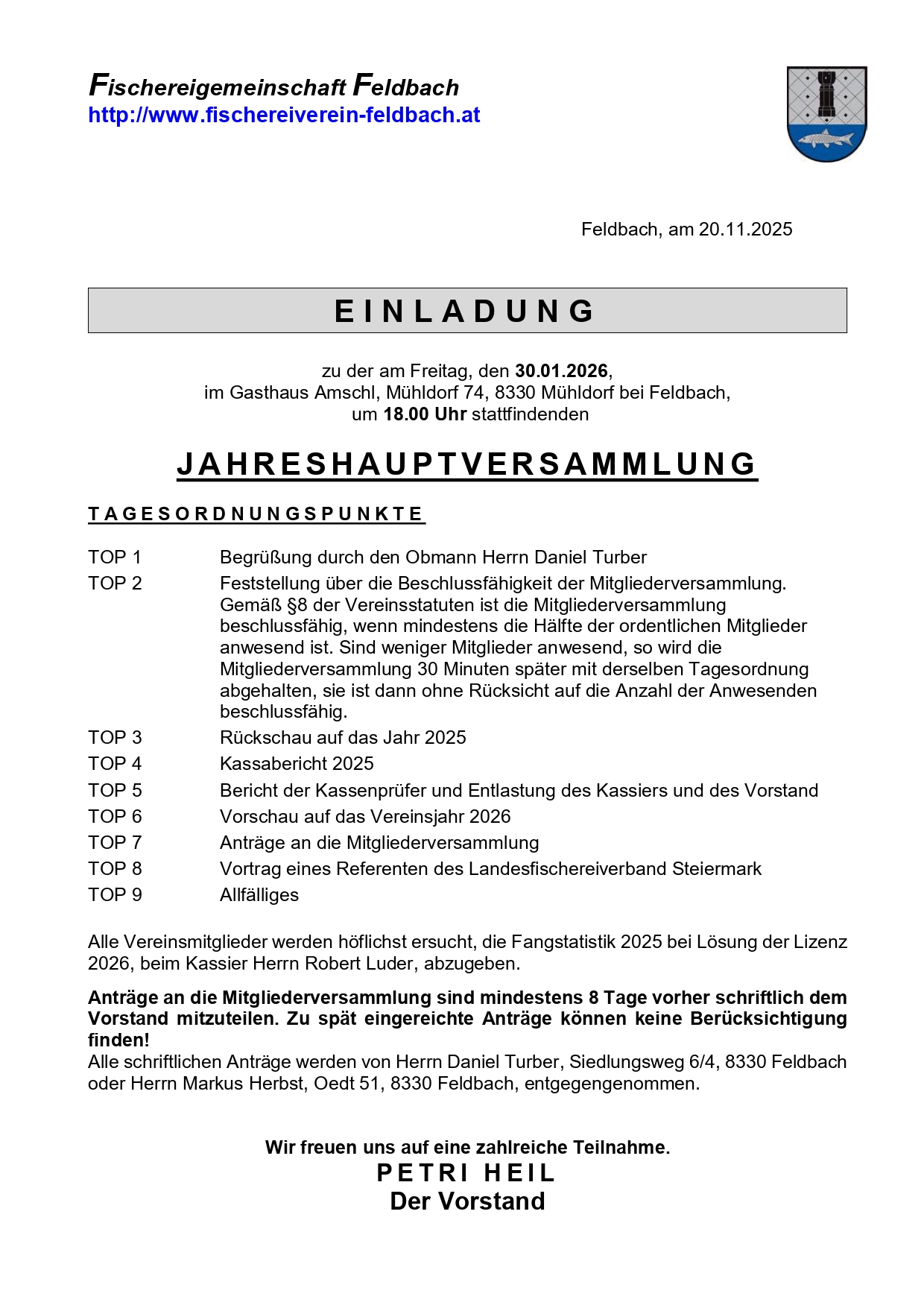 Einladung zur Jahreshauptversammlung 2026
